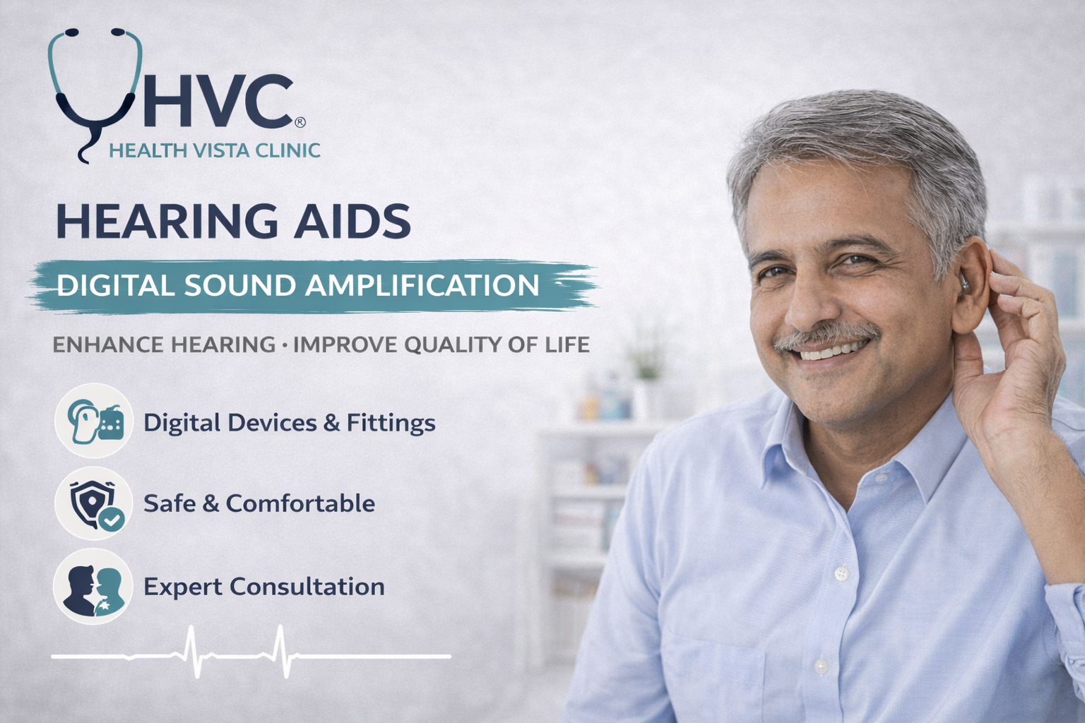 At Health Vista Clinic, we provide advanced hearing aid solutions tailored to your individual hearing needs and lifestyle. Following a detailed audiometric evaluation, our experts guide you in selecting the most suitable hearing devices for optimal comfort and clarity. From fitting and programming to ongoing support and maintenance, we ensure a seamless experience—helping you reconnect with the world of sound with confidence and ease.
